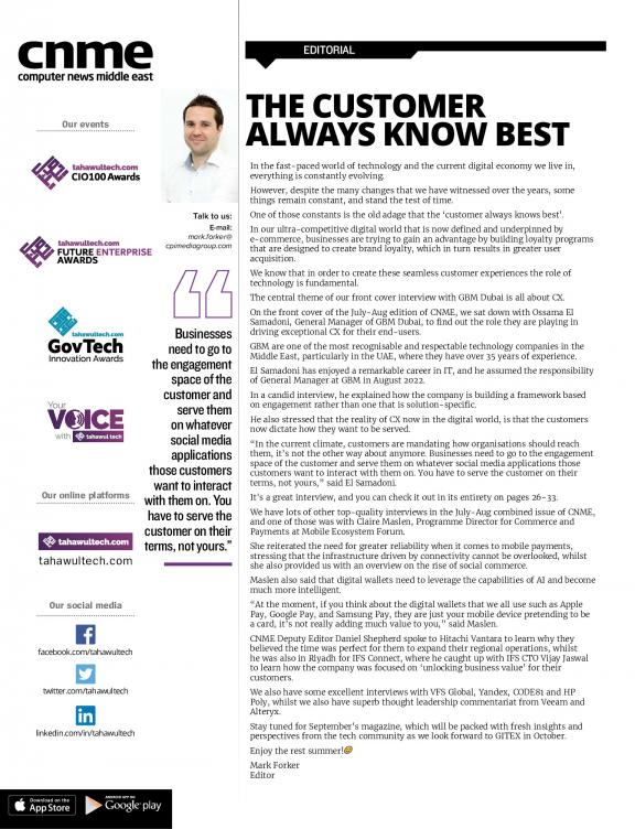 For any serious IT player in the Middle East, there are key market sectors that are easy to list – government, energy, banking, education, health, hospitality and so on. One key question is how do you use your marketing spend effectively to reach and influence the key decision makers in these markets? Plan and influence their strategies? For two decades, Computer News Middle East (CNME) has been the link between the regional IT player and these key target markets. It has driven the messages of local relevance, business benefit and technology into focus for these decision makers. The magazine covers all the important market sectors in depth, combining interviews, best practice case studies, news analysis and market trends through focused sections. Add to this analysis of global news, exclusive interviews with global IT players from Silicon Valley to Taipei and you have an authoritative route to market.