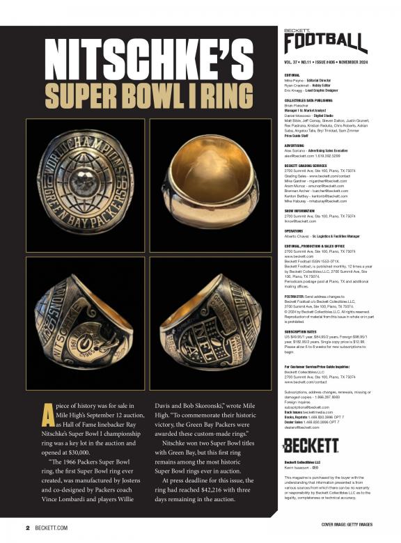 Beckett Football Magazine is your ultimate guide to navigating the world of football collectibles. Subscribe now and stay on top of the latest trends, values, and stories in the exciting hobby of football memorabilia.