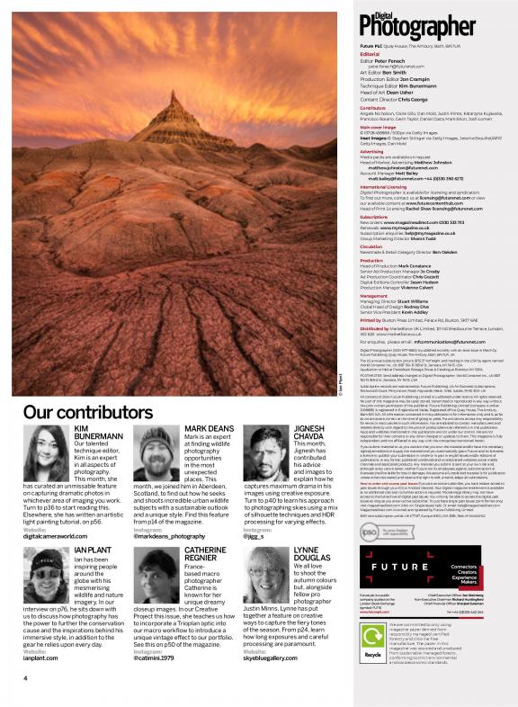 The digital photography magazine for enthusiasts and professionals launched in 2002, Digital Photographer is the ultimate monthly photography magazine, delivering indispensable, practical and hands-on shooting advice. Aimed at digital enthusiasts and professional photographers, Digital Photographer features the latest high-end kit reviews, expert interviews, practical shooting advice and image-editing tutorials to help you become a better photographer. We also showcase a selection of images from DP readers every month – the ideal launch pad for your career. Please note: Digital versions of the magazines do not include the cover mount items or supplements that you would find on printed editions.