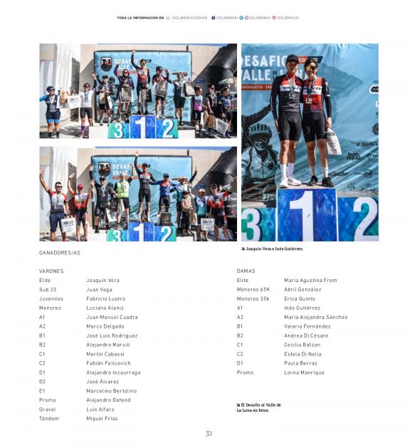 La revista que mes a mes refleja toda la actividad del ciclismo argentino, latino e internacional en todas sus modalidades.
