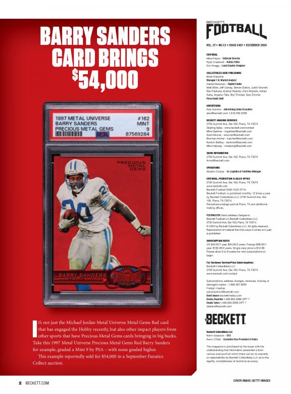 Beckett Football Magazine is your ultimate guide to navigating the world of football collectibles. Subscribe now and stay on top of the latest trends, values, and stories in the exciting hobby of football memorabilia.