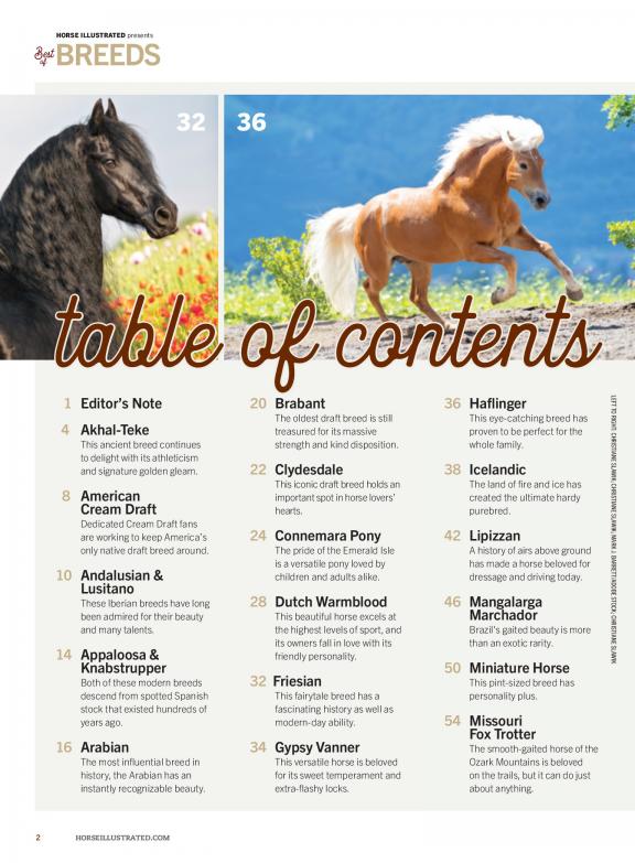 Horse Illustrated magazine is one of the leading publications dedicated to horseback riding, horse care and equestrian life. Horse Illustrated offers expert advice on English and western training, plus essential information on equine health and nutrition. Beautifully illustrated horse breed profiles, as well as step-by-step horse training tips and equestrian news and lifestyle features are informative as well as engaging. Whether in the show-ring or out on the trail, Horse Illustrated helps riders of all experience levels improve their riding performance and gives them the skills to better care for and enjoy their horses.
