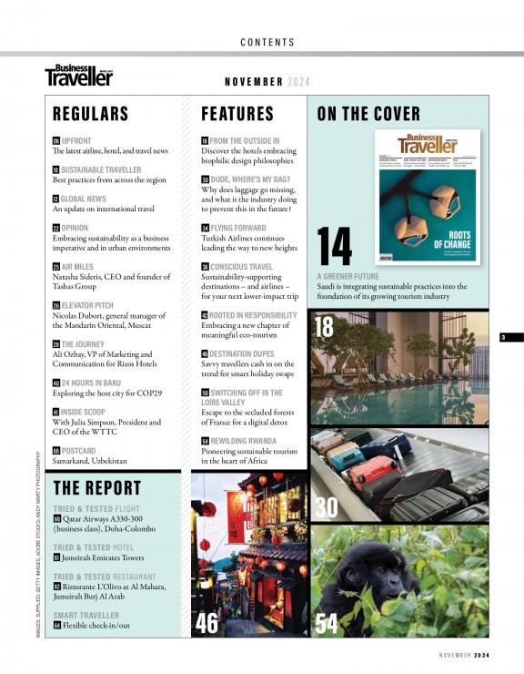 Business Traveller Middle East is the leading magazine for the corporate traveller. We aim to save you money and make your travelling life easier. Each edition has the latest news covering airlines, airports, hotels and car hire companies, regional and international destination features and updates on gadgets, technology and accessories.