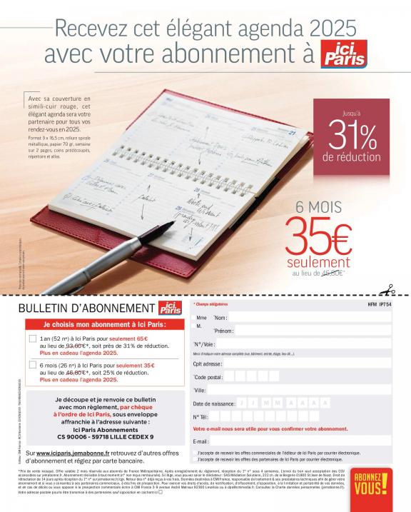 Le magazine Ici Paris vous fait partager la vie publique et privée de celles et ceux qui font l'actualité : exclusivités, interviews, enquêtes (la face cachée du showbiz, les coulisses de la télé) indiscrétions, potins.