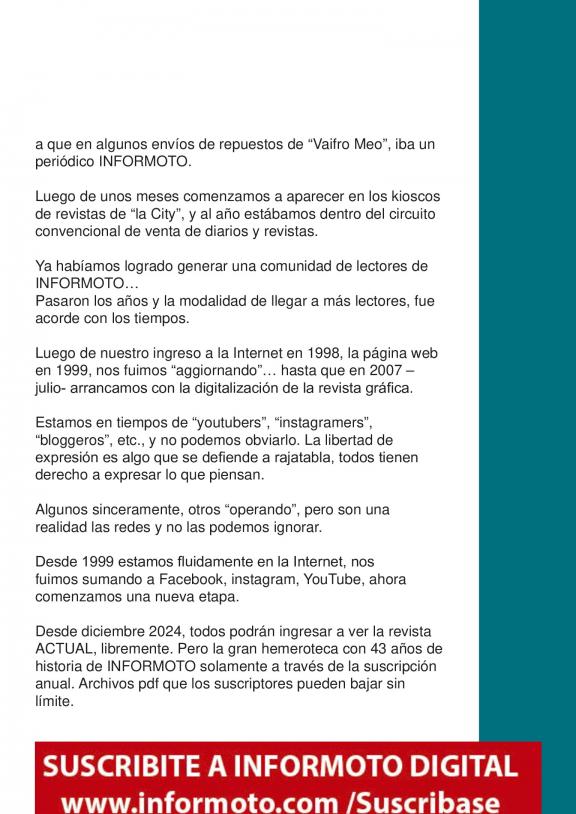 Revista líder del motociclismo argentino y latinoamericano. Mas de 40 años de vigencia. La publicación de la moto y de los motociclistas profesionales y amateurs.