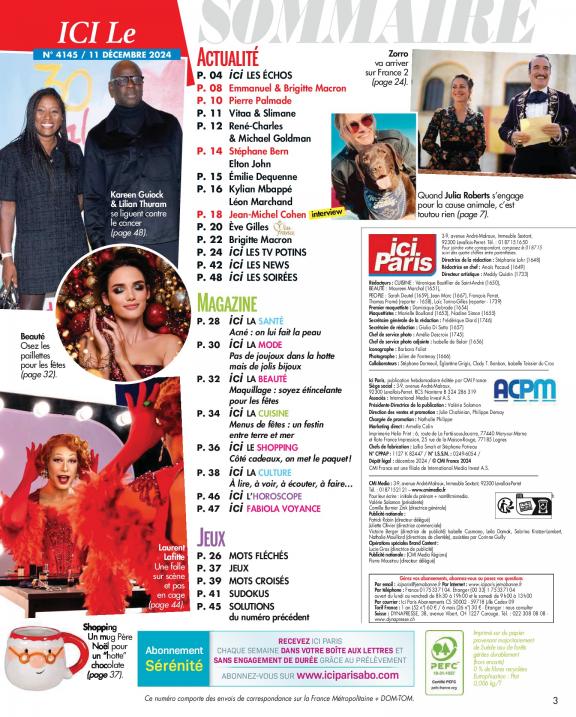 Le magazine Ici Paris vous fait partager la vie publique et privée de celles et ceux qui font l'actualité : exclusivités, interviews, enquêtes (la face cachée du showbiz, les coulisses de la télé) indiscrétions, potins.