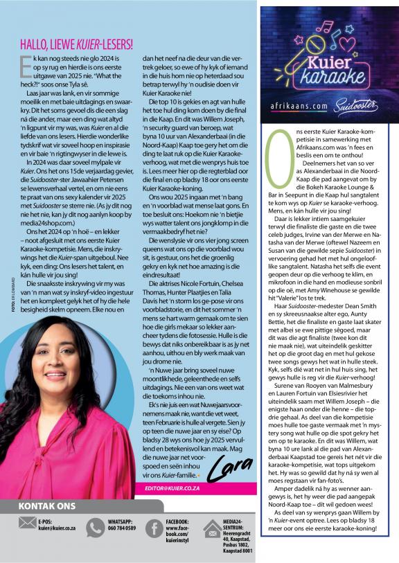Kuier gee raad oor alles van ouerskap, geldsake, verhoudings en gesondheid tot mode, skoonheid, dekor en kos. Die tydskrif deel inspirerende stories oor mense in die gemeenskap en streef daarna om lesers op te hef en te bemagtig deur die klem te plaas op positiewe stories en suksesvolle rolmodelle. Die projekte is grootliks gemeenskapgebaseerd, met die visie om waarlik ’n verskil in lesers se lewens te maak.