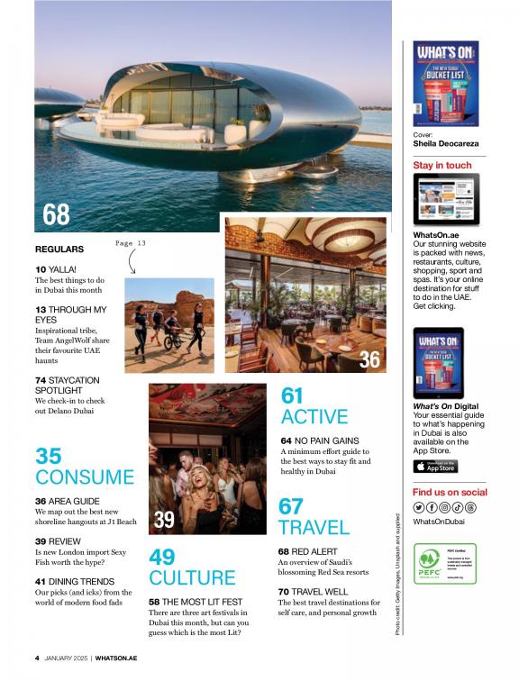 Stylish, Contemporary, Informed, Inspirational and Fun. Aimed at people looking to make the most of their time in the UAE. What’s On is packed with expert opinion, insider info, news, reviews, competitions and much more. What’s On provides in-depth coverage, strong emphasis on eating out, it is design driven, and has a strong credible entertainment guide.