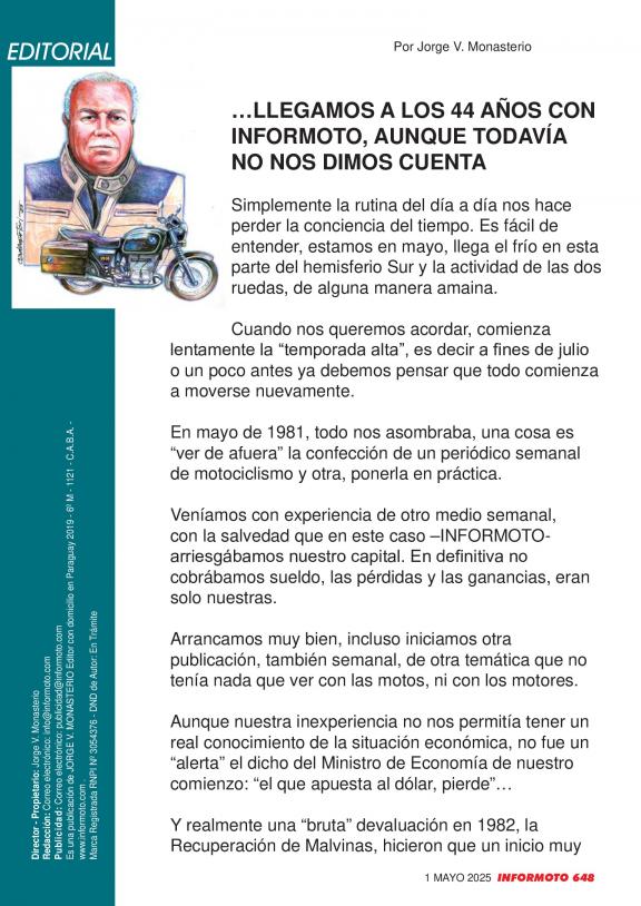 Revista líder del motociclismo argentino y latinoamericano. Mas de 40 años de vigencia. La publicación de la moto y de los motociclistas profesionales y amateurs.