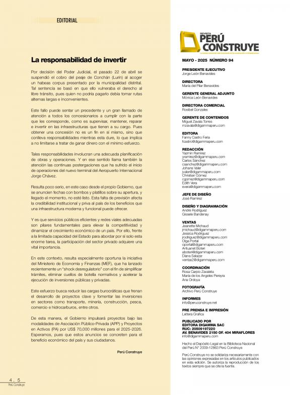 PERÚ CONSTRUYE es la revista que refleja la actividad de la construcción en Perú