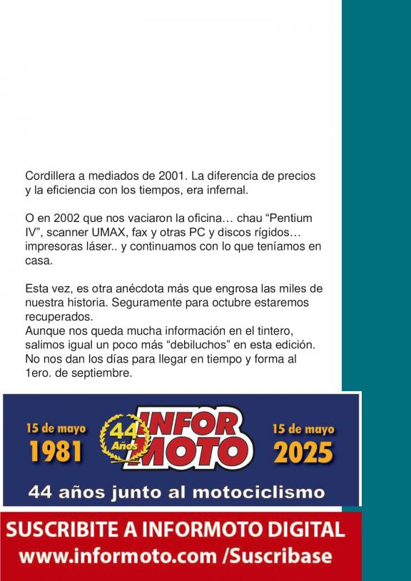 Revista líder del motociclismo argentino y latinoamericano. Mas de 40 años de vigencia. La publicación de la moto y de los motociclistas profesionales y amateurs.