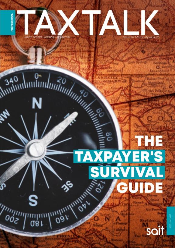 TaxTalk is South Africa's only publication dedicated to tax. The Jul/Aug Special Income Tax Return issue is a practical guide for taxpayers, accountants, practitioners and everyone in between this Tax Season!