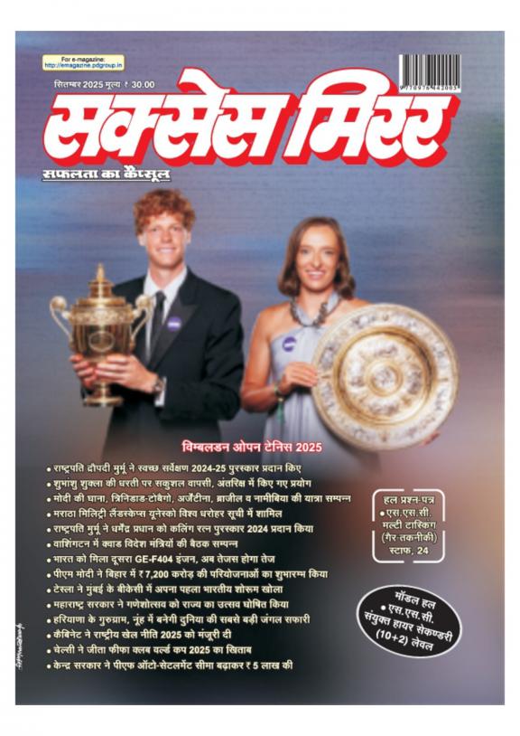 Success Mirror - Hindi is a Youth Oriented and This magazine provides - Overview of Latest events and Information which are useful for competitive Exams - Solved Question Paper and Career development Guidelines - Information about Jobs in Govt Sectors