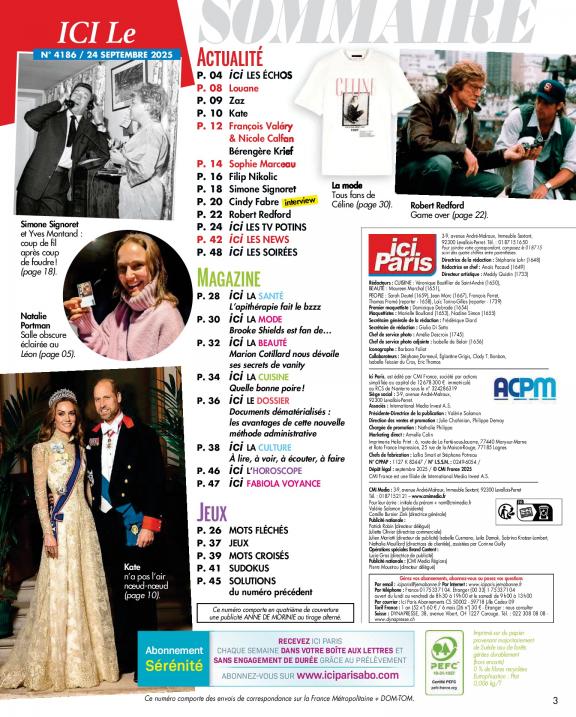 Le magazine Ici Paris vous fait partager la vie publique et privée de celles et ceux qui font l'actualité : exclusivités, interviews, enquêtes (la face cachée du showbiz, les coulisses de la télé) indiscrétions, potins.