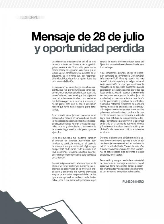 RUMBO MINERO es la revista de Perú y Latinoamérica de negocios de la minería