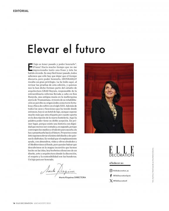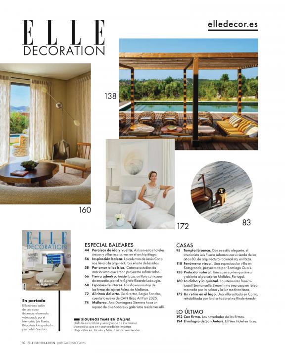 ELLE Decoration es la revista de decoración de alta gama más leída en el mundo. Cada mes acerca al lector a los espacios más inspiradores, las ideas de los mejores expertos y las últimas tendencias en decoración, interiorismo, diseño y arte; descubriéndole nuevos talentos y formas de vivir. DONDE EL DISEÑO Y LA DECORACIÓN SE UNEN A LAS IDEAS Y LA INSPIRACIÓN Mostramos interiores aspiracionales y ofrecemos a los lectores una gran variedad de ideas creativas y opiniones de expertos en diseño. Inspiramos y transformamos sus espacios vitales en lugares estimulantes y positivos para mejorar su vida.