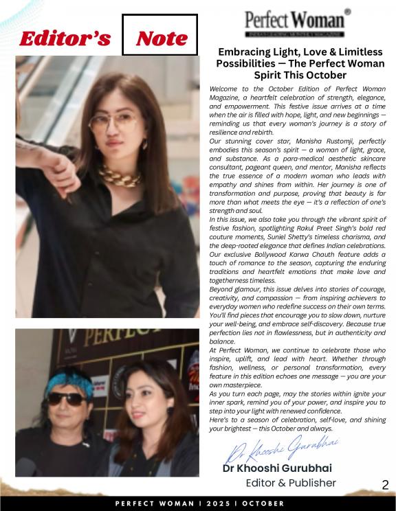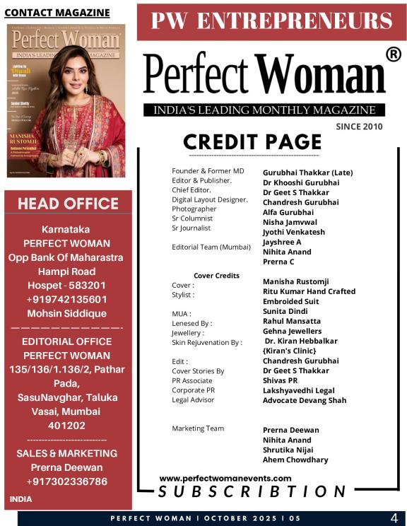 Our magazine, ‘Perfect Woman’ a fashion and lifestyle magazine, distributed across the country and is primarily targeted at the women of today, who are assertive and tenacious. Branched out of ‘GGC Limited’, an organization devoted to film production, this magazine has witnessed fruitful innings in the 3 years, since it came into being. Perfect Woman’s aim is to enhance their ambitious side and encourage and inspire women to achieve the goals that they have dreamed of accomplishing. Through this magazine we connect with women of every age and cater to her every need- be it fashion, beauty, fitness, lifestyle, work, food, relationship or travel. Now celebrating our fourth anniversary this year.