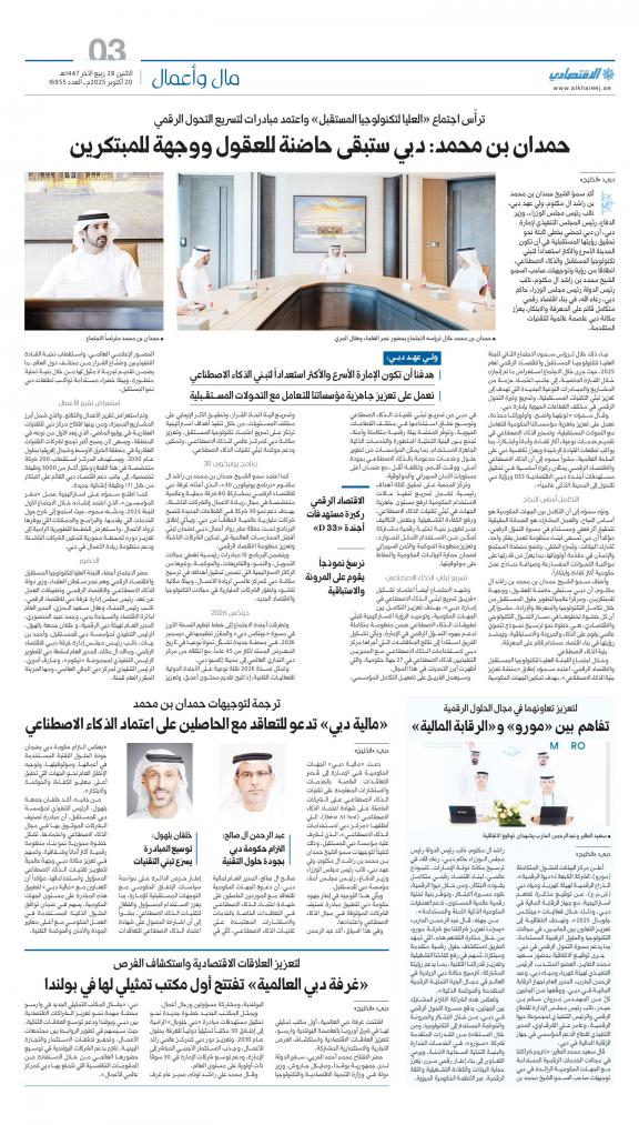 Al Khaleej Economy (Arabic: اقتصاد الخليج) is a daily Arabic-language broadsheet newspaper published in Sharjah, United Arab Emirates by Dar Al Khaleej. This newspaper is exclusive for the economy news and about trade information in the country.