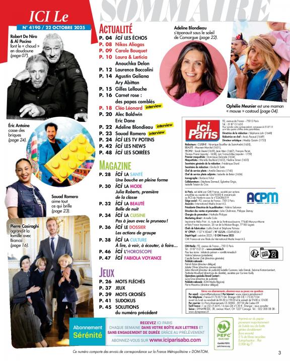 Le magazine Ici Paris vous fait partager la vie publique et privée de celles et ceux qui font l'actualité : exclusivités, interviews, enquêtes (la face cachée du showbiz, les coulisses de la télé) indiscrétions, potins.