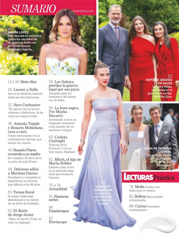 La revista Lecturas ofrece semanalmente toda la crónica social española e internacional. Descubre las exclusivas que marcan la actualidad, las grandes citas sociales, las pasarelas de alta costura y la vida de los famosos. Déjate seducir por la sección Práctica con los mejores consejos de belleza, moda, nutrición y salud.