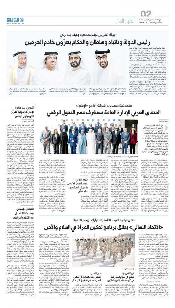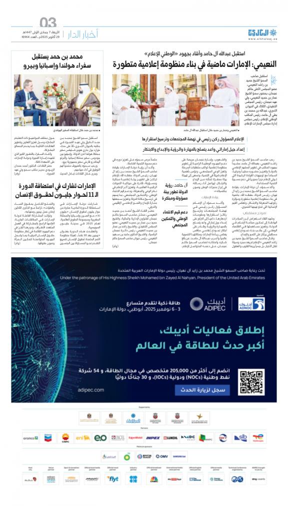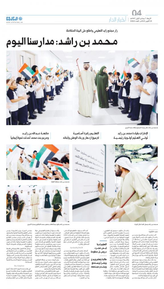Al Khaleej (Arabic: الخليج, lit. 'The Gulf') is a daily Arabic-language broadsheet newspaper published in Sharjah, United Arab Emirates by Dar Al Khaleej. This newspaper is the first newspaper published in the country.