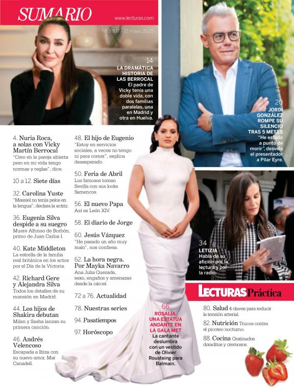 La revista Lecturas ofrece semanalmente toda la crónica social española e internacional. Descubre las exclusivas que marcan la actualidad, las grandes citas sociales, las pasarelas de alta costura y la vida de los famosos. Déjate seducir por la sección Práctica con los mejores consejos de belleza, moda, nutrición y salud.
