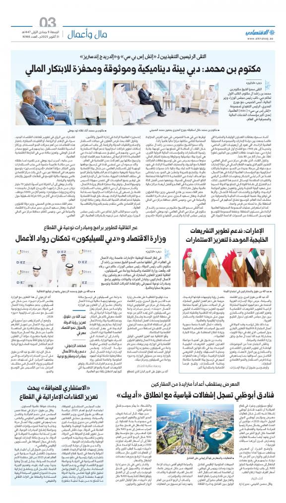 Al Khaleej Economy (Arabic: اقتصاد الخليج) is a daily Arabic-language broadsheet newspaper published in Sharjah, United Arab Emirates by Dar Al Khaleej. This newspaper is exclusive for the economy news and about trade information in the country.