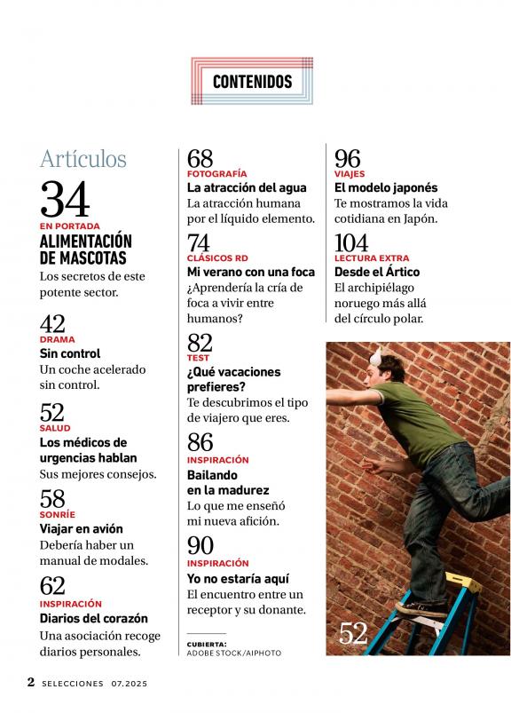 Descubre por qué Reader’s Digest es la revista más leída del mundo. Selecciones es la edición en España de esta mítica revista, editada en nuestro país desde los años cincuenta, con la que tantas personas se han inspirado, informado y entretenido con su amplia variedad de historias sobre gente, salud, humor, aventura, viajes y acontecimientos alrededor del mundo. Reportajes escritos por los mejores periodistas y verificados hasta los más mínimos detalles para garantizar a sus lectores la mejor y más completa información.