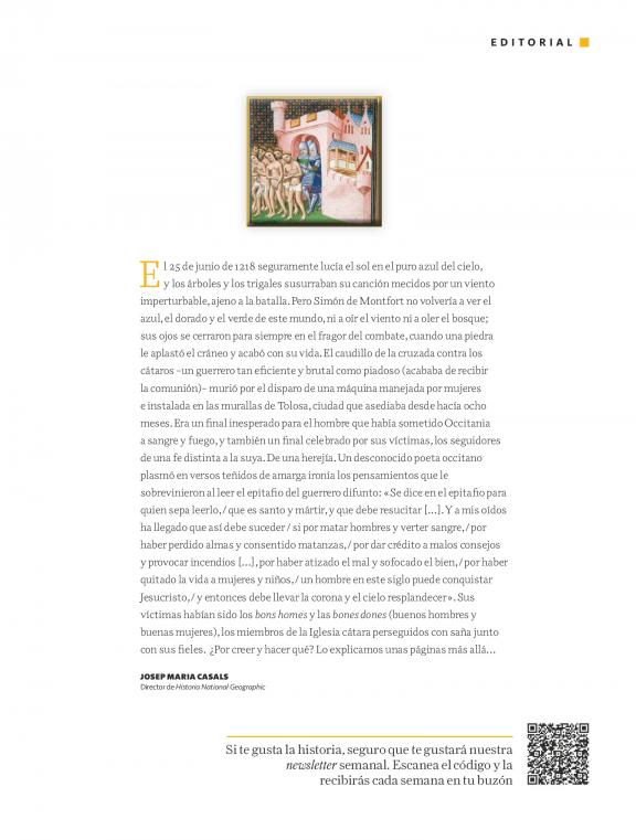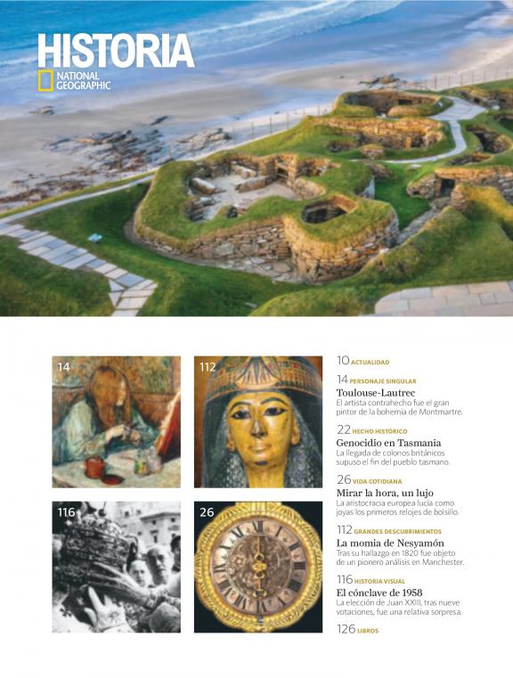 Descubre los episodios más apasionantes de la historia con las últimas y más rigurosas investigaciones por parte de los expertos de mayor prestigio. Todo ello, junto a fotografías, reconstrucciones históricas y mapas de gran calidad, símbolo y enseña de National Geographic. HISTORIA NATIONAL GEOGRAPHIC es la revista que, con el rigor editorial de National Geographic, te trasladará por las diferentes etapas de la historia: - hechos históricos trascendentales: batallas, exploraciones, conquistas, revoluciones - excepcionales personajes: Cleopatra, César, Leonardo da Vinci, Napoleón - avances culturales y científicos: el nacimiento de la escritura, la aparición del alfabeto, la astronomía en Mesopotamia, la medicina en Grecia - grandes monumentos: catedrales góticas, la Capilla Sixtina, la Ciudad - diferentes civilizaciones y su vida cotidiana: desde Egipto hasta el mundo maya