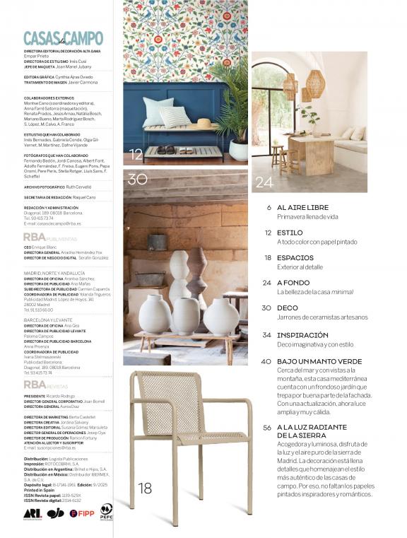 CASAS DE CAMPO Especializada en la decoración y el estilo de vida campestres, despliega el encanto de las casas rústicas actualizadas. Y todos los elementos únicos de una casa de campo: porches tranquilos rodeados de flores, jardines pensados para disfrutar, salones con paredes de piedra vista, vigas de madera rehabilitadas o recicladas, chimeneas que aportan una extraordinaria calidez, piezas con sabor de antes, tejidos gustosos y nobles, trucos decorativos rustic chic... Y en muchos estilos diferentes para decorar una casa de ensueño: desde la elegancia del clásico al romántico provenzal o al luminoso mediterráneo.