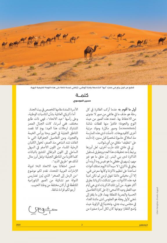 بعد النجاح المدوي لمجلة ناشيونال جيوغرافيك ماغازين، دخلت الجمعية الجغرافية الوطنية غمار الترخيص بطبع نسخ عالمية من المجلة بلغات بلدان مختلفة. ومع توالي النجاحات في هذا المنحى، أصبح عدد الطبعات العالمية يفوق الثلاثين، كلها متشحة بلون الذهب وهي تتفيأ بظلال الإطار الشهير لناشيونال جيوغرافيك. ثم آن أوان الحدث الذي ظل عشاق المعرفة عبر العالم العربي ينتظرونه مدة عقود من الزمن: ناشيونال جيوغرافيك بلغة المتنبي والجاحظ. وكانت الانطلاقة في أكتوبر 2010 من أبوظبي حيث نشأت وازدهرت كبريات المؤسسات الإعلامية على الصعيد العالمي، وفي مقدمتها “أبوظبي للإعلام” التي تصدر مجلة “ناشيونال جيوغرافيك العربية”. منذ أول عدد من المجلة، أخذ طاقمها على عاتقه انتقاء أجود الموضوعات وأكثرها رصانة من أجل تقديم أشهى الأطباق المعرفية إلى القارئ العربي المتعطش لاكتشاف ما ينطوي عليه كوكب الأرض من أسرار. ولئن كان جل المواد المنشورة في المجلة العربية عبارة عن ترجمات من ناشيونال جيوغرافيك ماغازين، فإن الموضوعات التي تتطرق إلى المنطقة العربية- بأقلام وعدسات عربية- تجد لها حيزا خاصا بين صفحات المجلة في كل عدد. وعلى خطى المجلة الأم، ما انفكت ناشيونال جيوغرافيك العربية تستقطب خيرة المستكشفين والمصورين الفوتوغرافيين العرب من أجل كشف الحجاب عن الكنوز الطبيعية التي يزخر بها الوطن العربي براً وبحرا. كما تستنير المجلة بمشكاة هيئة علمية استشارية تضم ألمع الخبراء والعلماء العرب على الصعيد العالمي. بعد أن أنارت سماء الإعلام العربي وأضافت زخما جديدا للمطبوعات العلمية النادرة بلغة الضاد، تواصل ناشيونال جيوغرافيك العربية رحلتها في دروب المعرفة من أجل تنوير القارئ العربي وتعميق معرفته بالعالم، حتى تبقى على الدوام نافذته الفريدة على عالم لم يعشه من قبل