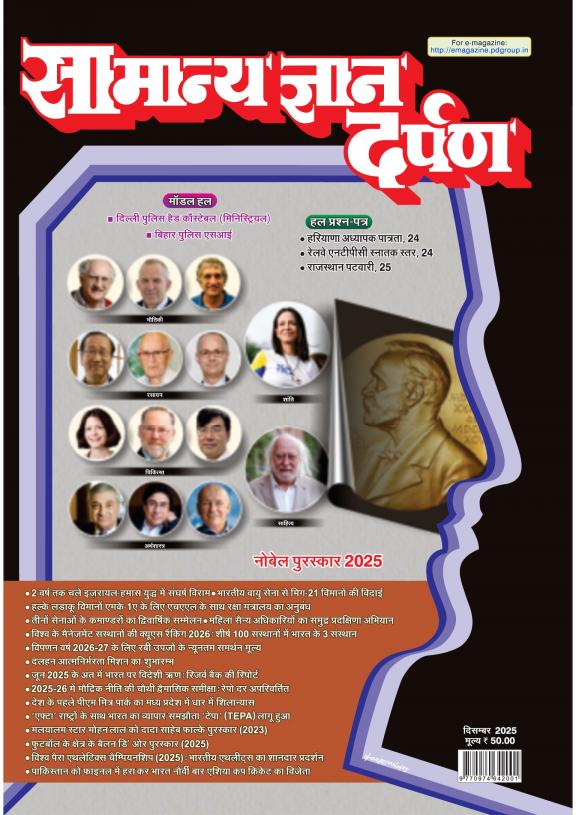 Samanya Gyan Darpan is a Hindi magazine that provides information on general knowledge, history, geography, science, and other topics. The magazine was first published in 1980 and is still one of the most popular general knowledge magazines in India. Samanya Gyan Darpan features a variety of articles each month, including: * General knowledge questions: This section asks general knowledge questions on a variety of topics. * Subject-based articles: This section publishes informative articles on a particular subject. * Special issues: This section publishes special issues on a particular topic, such as history, geography, science, or others. Samanya Gyan Darpan is a valuable resource for students, competitive exam aspirants, and the educated public in general. The magazine can help you learn about the world and increase your knowledge.