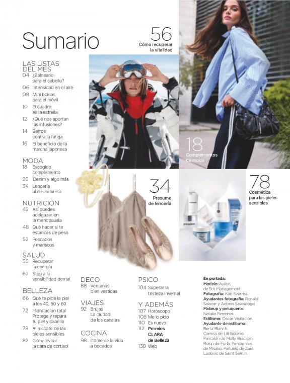 Clara es la revista femenina más completa de España. Todo lo que busca la lectora más exigente está en CLARA: moda, belleza, dietas, salud, estilo de vida, psicología, decoración, mascotas