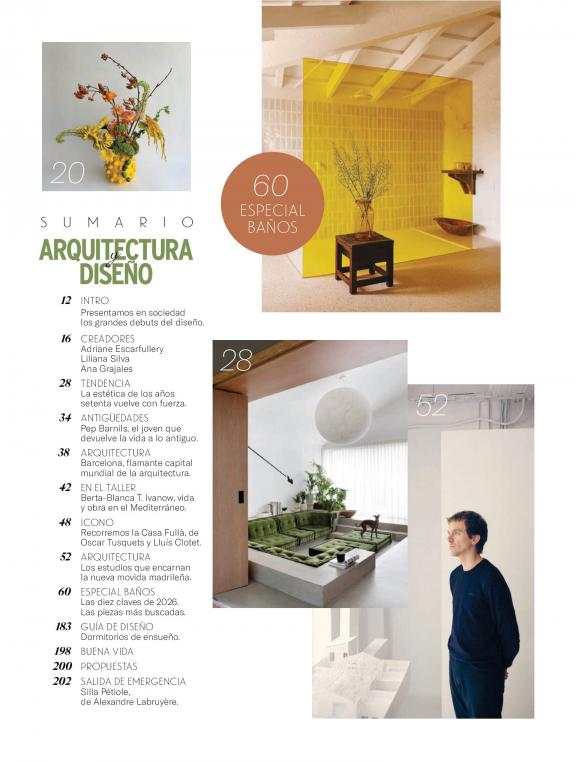 Más de dos décadas siendo un referente en el mundo de la arquitectura y el diseño, con un visión propia, más profunda y analítica que el resto de títulos del sector. El rigor técnico va de la mano con una estética atractiva y cuidada. En sus página, nuevos creadores, proyectos arquitectónicos reseñables, tendencias de materiales, entrevistas a iconos del diseño o la aquitectura y una guía monográfica dedicada a temas como la cocina o el baño.