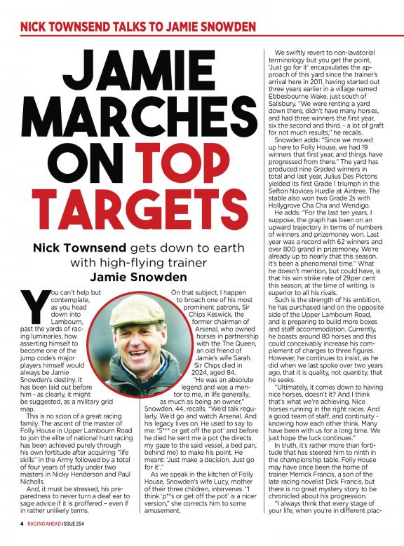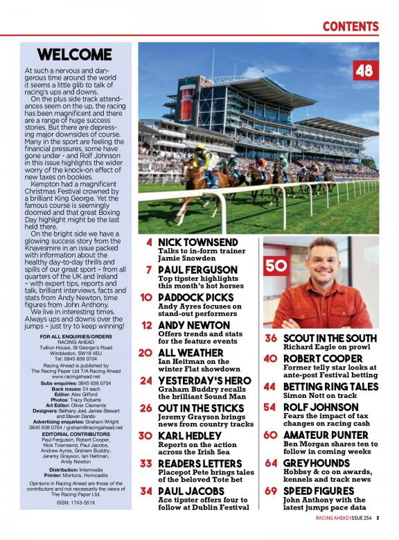 Racing Ahead was founded in 1975 by a group of horse racing enthusiasts who wanted to create a magazine that would provide comprehensive coverage of the sport. Racing Ahead is known for its in-depth reporting, its insightful analysis, and its stunning photography. It features articles on a variety of topics, including: * Race news: The latest news from the horse racing world, from upcoming races to industry trends. * Horse profiles: Profiles of horses, from up-and-coming stars to legends of the sport. * Trainer profiles: Profiles of trainers, from those who are just starting out to those who have won the Triple Crown. * Jockey profiles: Profiles of jockeys, from those who are just starting out to those who have won the Kentucky Derby. * Racecourse reviews: Reviews of racecourses, from those that are new to the scene to those that are steeped in history. Racing Ahead is a must-read for anyone who is interested in horse racing. It is the only magazine that provides comprehensive coverage of the sport, from news and profiles to racecourse reviews. Subscribe today and become part of the horse racing community!