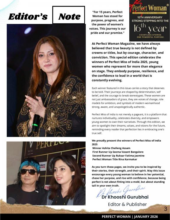 Our magazine, ‘Perfect Woman’ a fashion and lifestyle magazine, distributed across the country and is primarily targeted at the women of today, who are assertive and tenacious. Branched out of ‘GGC Limited’, an organization devoted to film production, this magazine has witnessed fruitful innings in the 3 years, since it came into being. Perfect Woman’s aim is to enhance their ambitious side and encourage and inspire women to achieve the goals that they have dreamed of accomplishing. Through this magazine we connect with women of every age and cater to her every need- be it fashion, beauty, fitness, lifestyle, work, food, relationship or travel. Now celebrating our fourth anniversary this year.