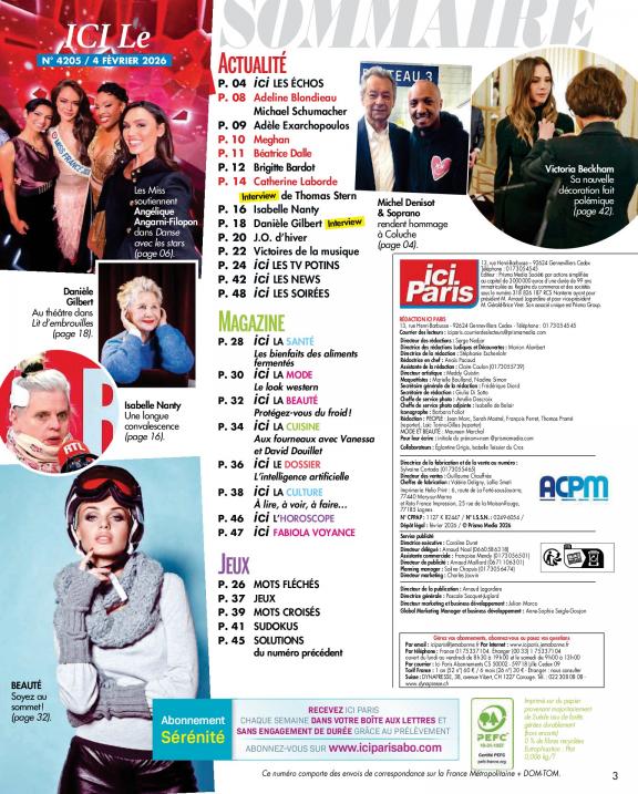 Le magazine Ici Paris vous fait partager la vie publique et privée de celles et ceux qui font l'actualité : exclusivités, interviews, enquêtes (la face cachée du showbiz, les coulisses de la télé) indiscrétions, potins.