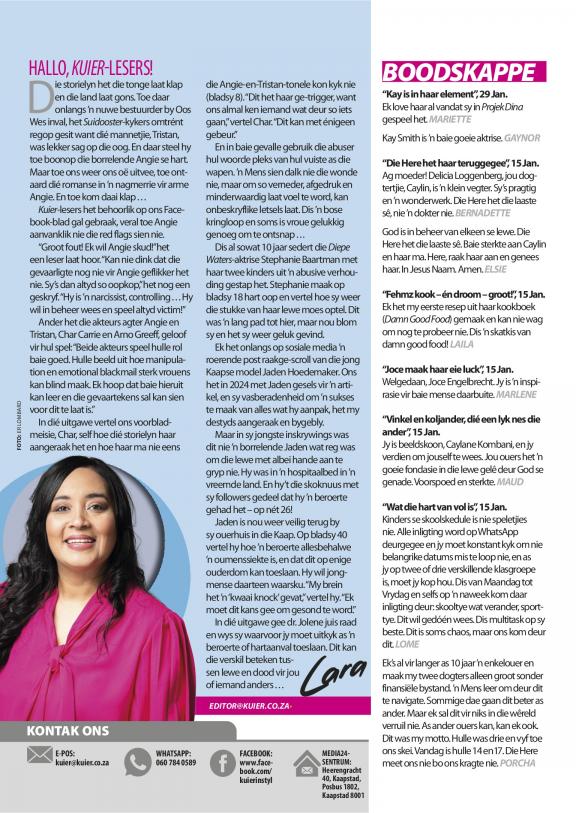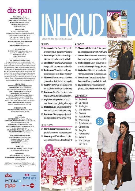 Kuier gee raad oor alles van ouerskap, geldsake, verhoudings en gesondheid tot mode, skoonheid, dekor en kos. Die tydskrif deel inspirerende stories oor mense in die gemeenskap en streef daarna om lesers op te hef en te bemagtig deur die klem te plaas op positiewe stories en suksesvolle rolmodelle. Die projekte is grootliks gemeenskapgebaseerd, met die visie om waarlik ’n verskil in lesers se lewens te maak.