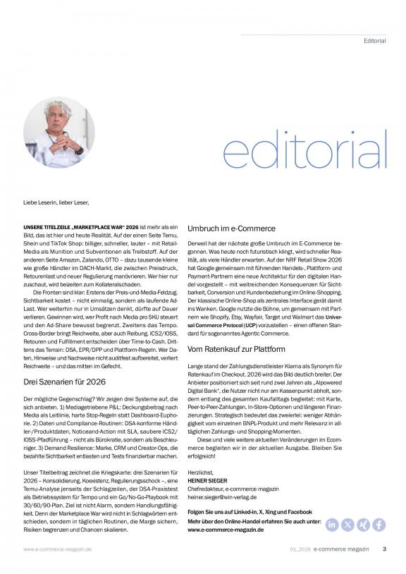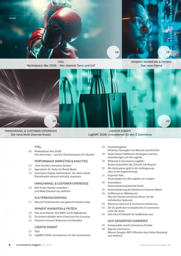 Das e-commerce Magazin ist die Pflichtlektüre all derer, die im Internet werben, suchen, auswählen, kaufen und bezahlen möchten – kurz: einen Handel von Dienstleistungen und Produkten im Internet abwickeln wollen.