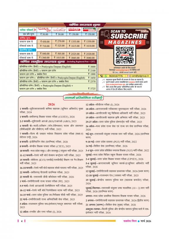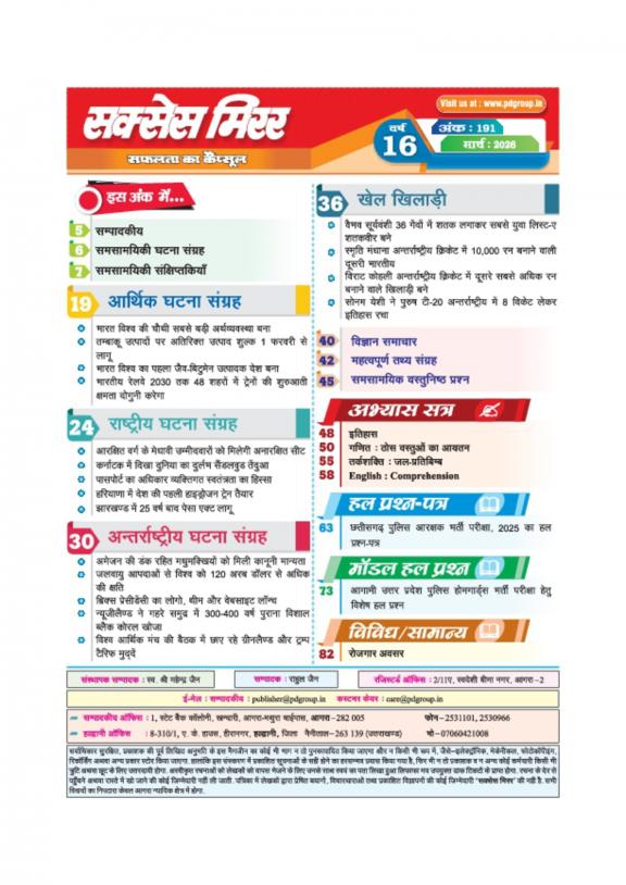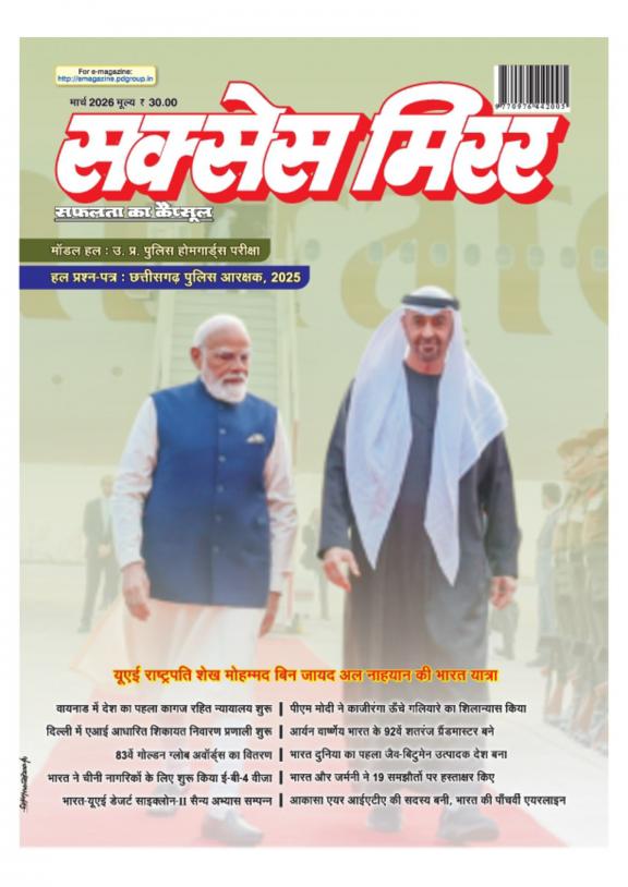 Success Mirror - Hindi is a Youth Oriented and This magazine provides - Overview of Latest events and Information which are useful for competitive Exams - Solved Question Paper and Career development Guidelines - Information about Jobs in Govt Sectors
