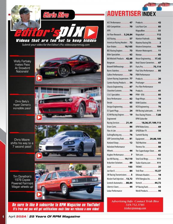 The focus of RPM is to bring a diverse mix of high performance street and race automobiles to life within its pages including: Race cars, musclecars, hot rods and street legal machines with an emphasis on the "Extreme" including Fast doorslammer and outlaw forms of Drag Racing. Not familiar with these types of cars? They are considered to be the top shelf of the industry and are on the edge with regards to design and power. Grab your copy today and check it out. We are sure you will want more!