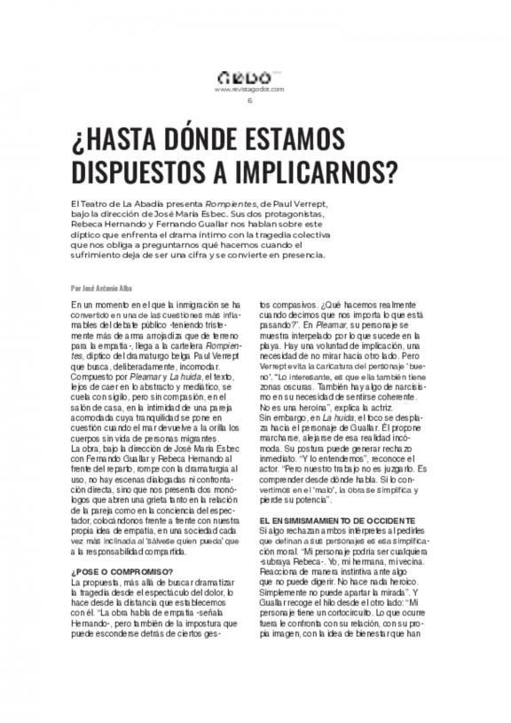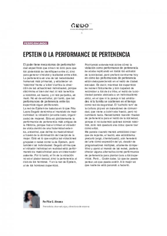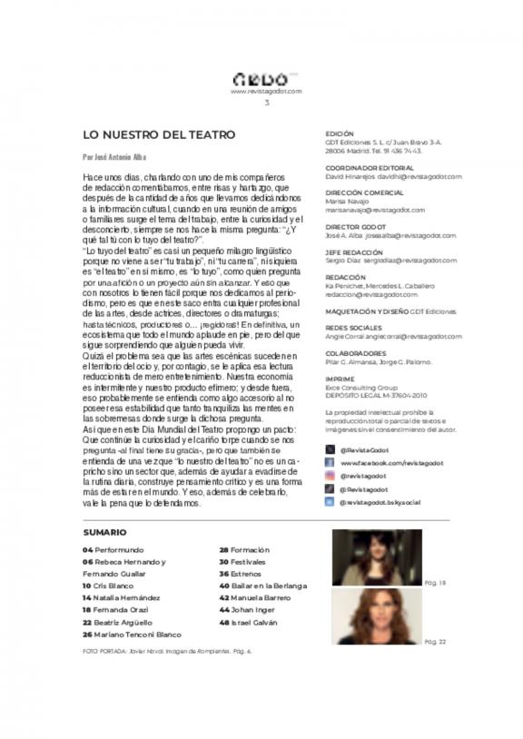 Revista Godot de Madrid es una publicación especializada en artes escénicas, centrada principalmente en la teatralidad, danza y escena cultural de Madrid y España.