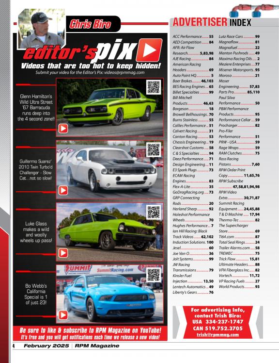The focus of RPM is to bring a diverse mix of high performance street and race automobiles to life within its pages including: Race cars, musclecars, hot rods and street legal machines with an emphasis on the "Extreme" including Fast doorslammer and outlaw forms of Drag Racing. Not familiar with these types of cars? They are considered to be the top shelf of the industry and are on the edge with regards to design and power. Grab your copy today and check it out. We are sure you will want more!