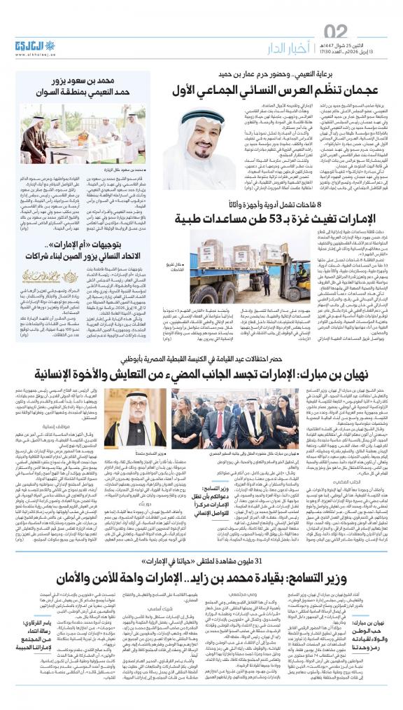 Al Khaleej (Arabic: الخليج, lit. 'The Gulf') is a daily Arabic-language broadsheet newspaper published in Sharjah, United Arab Emirates by Dar Al Khaleej. This newspaper is the first newspaper published in the country.