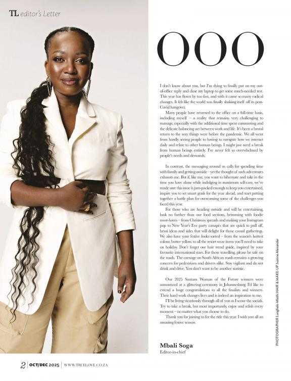 True Love is the iconic South African fashion, beauty and lifestyle magazine for black women. It is the go-to handbook and style guide for women who believe that their magazine should be stylish and thought provoking. It challenges its readers with in depth, focusing on subjects that stimulate debate and discussion.