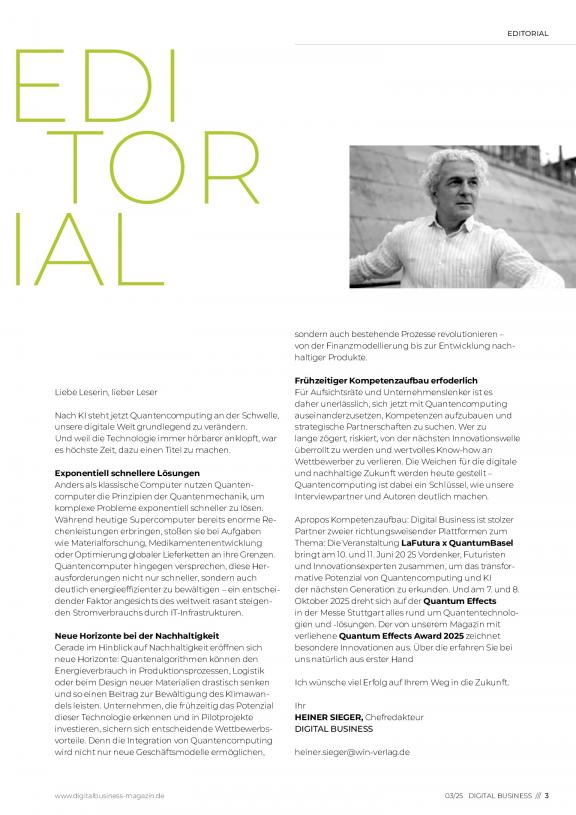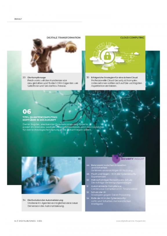 Das DIGITAL BUSINESS MAGAZIN informiert übergreifend, praxisnah und auf den unternehmerischen Alltag abgestimmt über die Auswirkungen der digitalen Transformation in Unternehmen. Digitale Transformation verstehen wir als durchgängige Vernetzung aller Wirtschaftsbereiche und als Anpassung der Akteure an die neuen Gegebenheiten der digitalen Ökonomie.