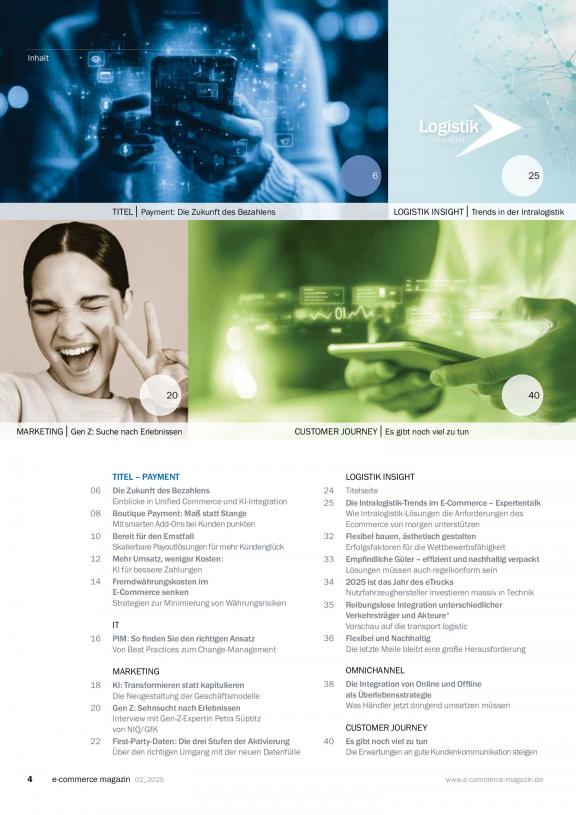 Das e-commerce Magazin ist die Pflichtlektüre all derer, die im Internet werben, suchen, auswählen, kaufen und bezahlen möchten – kurz: einen Handel von Dienstleistungen und Produkten im Internet abwickeln wollen.