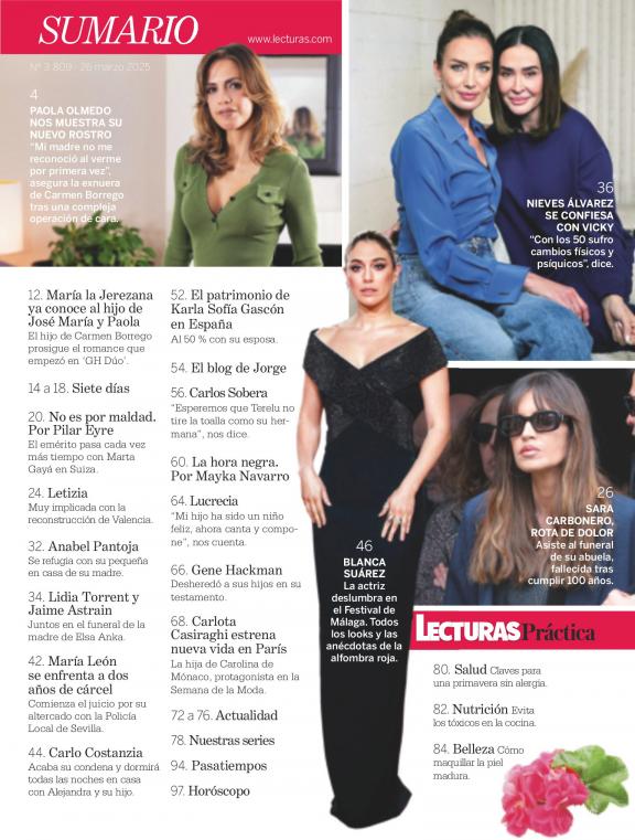 La revista Lecturas ofrece semanalmente toda la crónica social española e internacional. Descubre las exclusivas que marcan la actualidad, las grandes citas sociales, las pasarelas de alta costura y la vida de los famosos. Déjate seducir por la sección Práctica con los mejores consejos de belleza, moda, nutrición y salud.