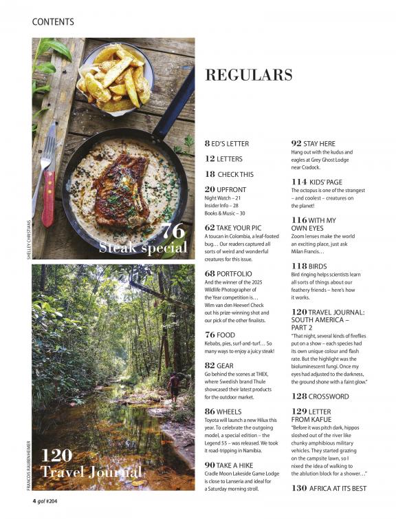 South Africa’s number one travel and outdoor lifestyle magazine. We pay our own way and tell it like it is. We drive back roads and speak to real people, giving you practical information about affordable destinations in southern Africa. Each issue is crammed with excellent photography, honest gear reviews and delicious recipes to make at home or in the bundu. Whether you’re looking to escape for a weekend or a month, your journey starts here.