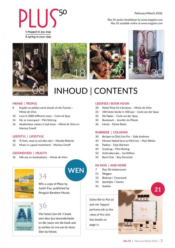 Plus 50 is ‘n nasionale tydskrif gerig op die seniorsmark van Suid-Afrika. Dit is die mondstuk van die seniorsorganisasie GrysKrag, hoewel dit deur ‘n onafhanklike kommersiële instansie Plus 50 Media (Edms) Bpk uitgegee word. Die tydskrif het in 2005 vir die eerste keer verskyn. Die hartslag van die tydskrif is positiewe veroudering. Die artikels is in Afrikaans of in Engels en raak onderwerpe oor ‘n wye spektrum van seniorsbelangstelling aan, waaronder aftree-beplanning, behuising, pensioen- en geldsake, emosionele en liggaamlike gesondheid, inspirerende persoonlikhede, sport, kultuur, vakansies, stokperdjies, nuwe boeke, jonkbly-modes en verjongende kure. Die tydskrif verskyn elke twee maande: Januarie/Februarie, Maart/April, Mei/Junie, Julie/Augustus, September/Oktober, November/Desember. Dit het ‘n oplaag van 13 000, dra artikels in Engels en Afrikaans, is nie-polities van aard, word landwyd versprei en is to koop by supermarkte (Spar, Pick’nPay), boekwinkels (Exclusive Books, CNA, PNA), sowel as by sommige vulstasies en apteke. Die redakteur van die tydskrif is dr Karel Prinsloo en die mediese redakteur is professor Oppel Greeff, hoof van die Departement Farmakologie aan die Universiteit van Pretoria. Plus 50 is a national magazine aimed at the seniors market of South Africa. It is the mouthpiece of the seniors organisation GreyPower, although published by an independent commercial company Plus 50 Media (Pty) Ltd. The magazine appeared for the first time in 2005. A philosophy of positive ageing is at the heart of the magazine. The articles are in Afrikaans or in English and touch on a wide range of subjects of interest to seniors, such as retirement planning, housing, pension and money matters, emotional and physical health, inspiring personalities, sport, culture, hobbies, new books, looking youthfully plus 50 and anti-ageing therapies. The magazine appears every two months, i e January/February, March/April, May/June, July/August, September/October, November/December, with a print-run of 13 000. It is distributed nationally and appears on the shelves of supermarkets (Spar, Pick’nPay), bookshops (Exclusive Books, CNA, PNA) and is also on sale at selected garages and pharmacies. It is an unbiased publication not affiliated to any political party or organisation. The editor is Dr Karel Prinsloo and its medical editor is Professor Oppel Greeff, Head of the Department of Pharmacology at the University of Pretoria.